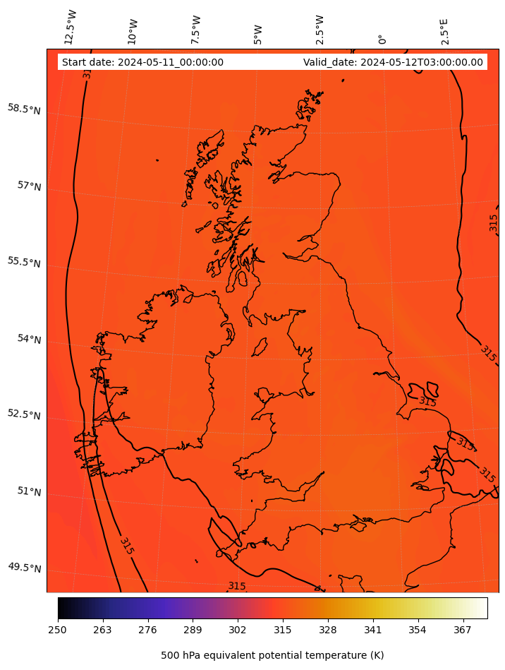 - Equivalent Potential Temperature (K)