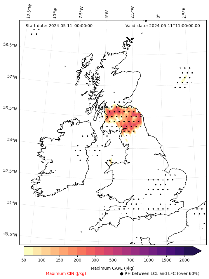 - Maximum CAPE (J/Kg)