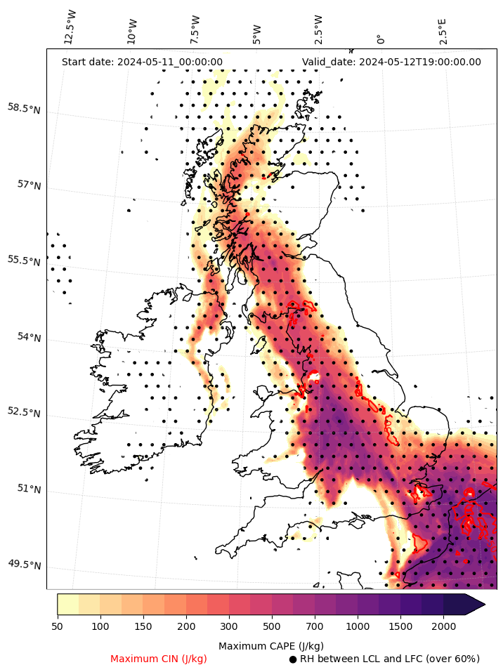 • Maximum CAPE (J/Kg)