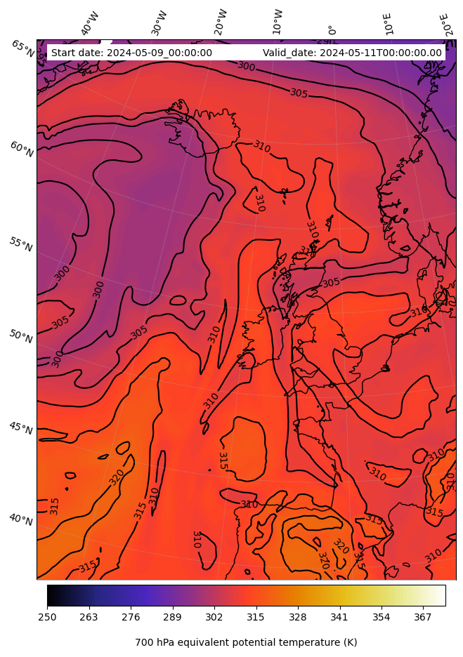 - Equivalent Potential Temperature (K)