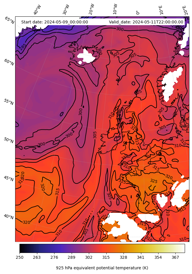 - Equivalent Potential Temperature (K)