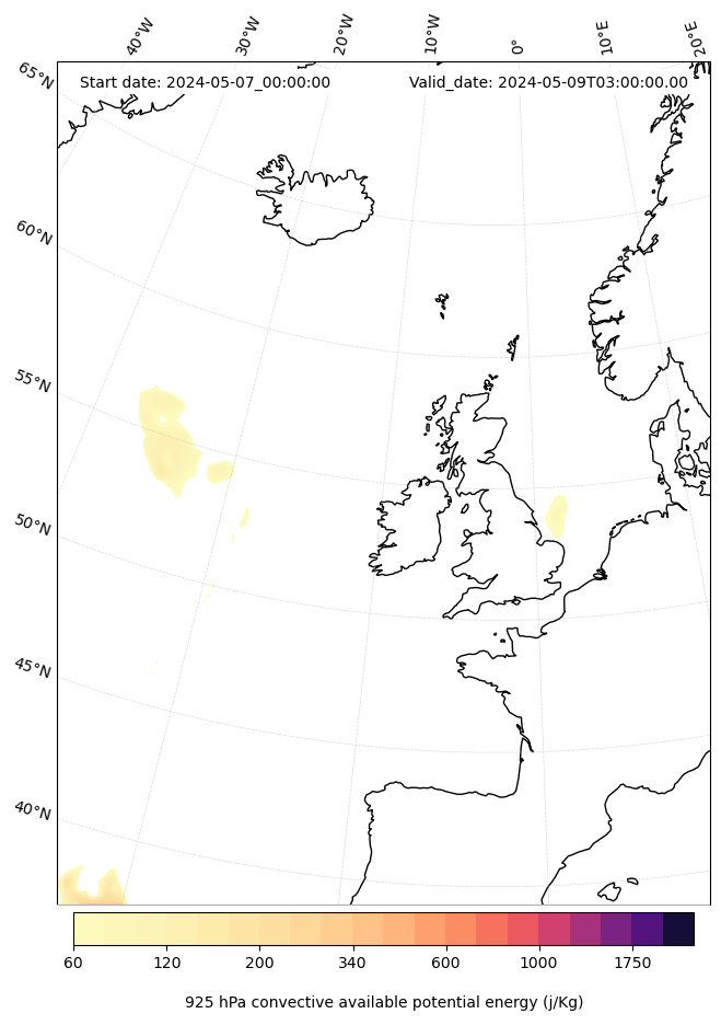 - Maximum CAPE (J/Kg)