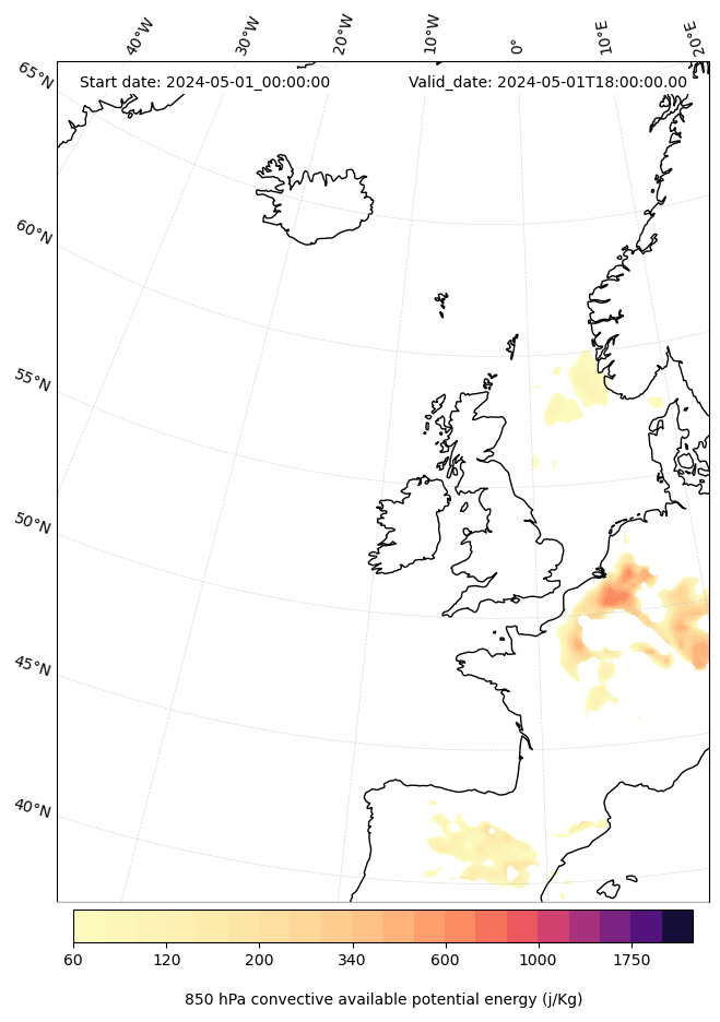 - Maximum CAPE (J/Kg)