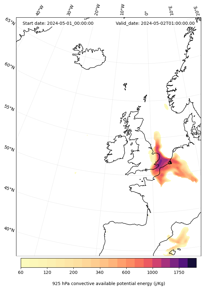- Maximum CAPE (J/Kg)