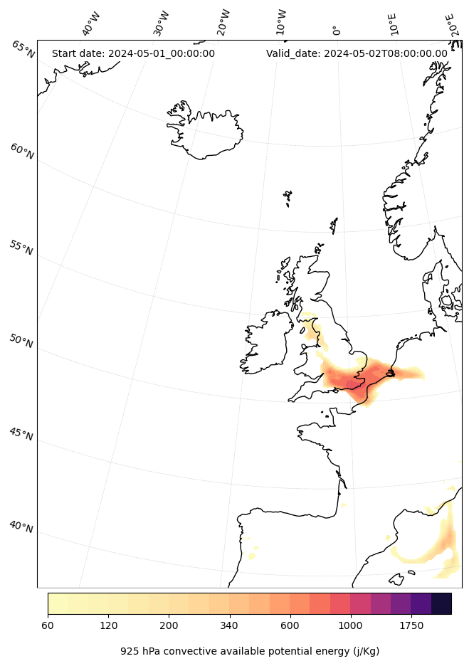 - Maximum CAPE (J/Kg)