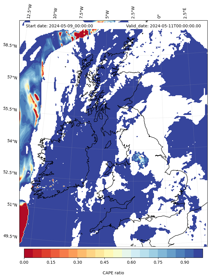 - Maximum CAPE (J/Kg)