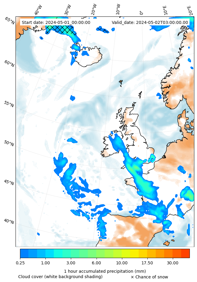 - Snow mixing ratio (g kg¯¹)