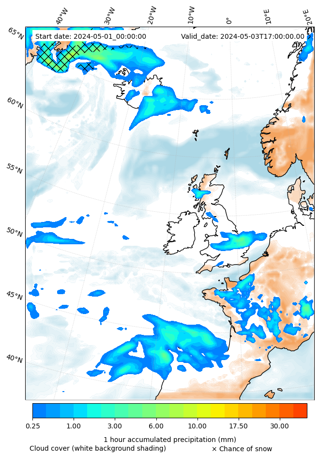 - Snow mixing ratio (g kg¯¹)
