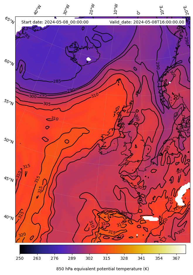 - Equivalent Potential Temperature (K)