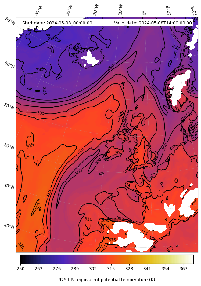 - Equivalent Potential Temperature (K)