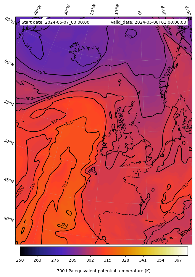 - Equivalent Potential Temperature (K)