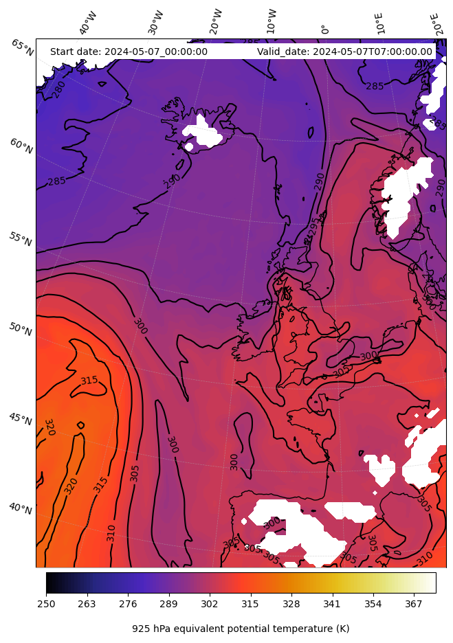 - Equivalent Potential Temperature (K)
