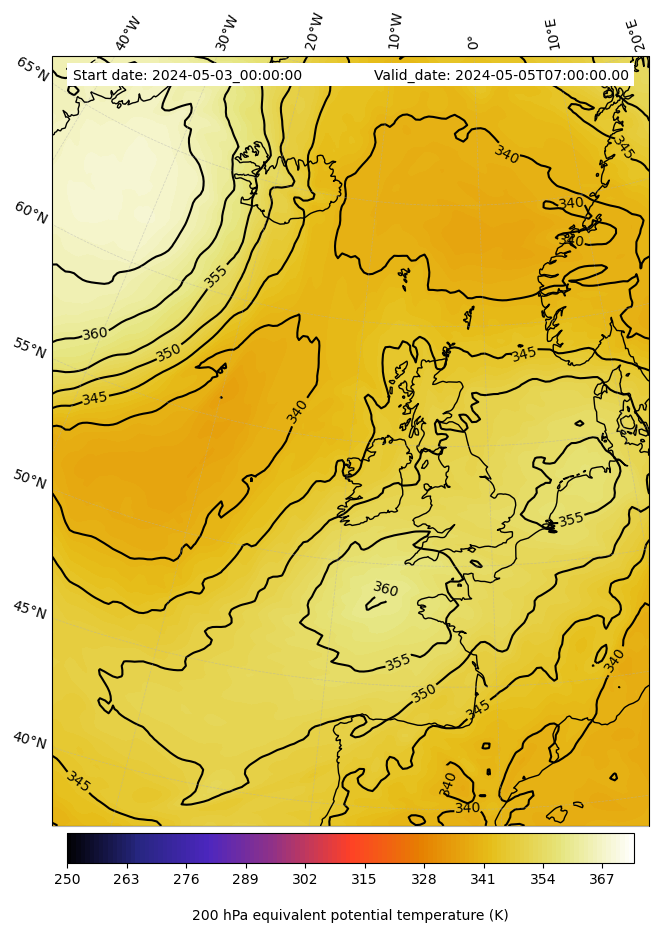 - Equivalent Potential Temperature (K)