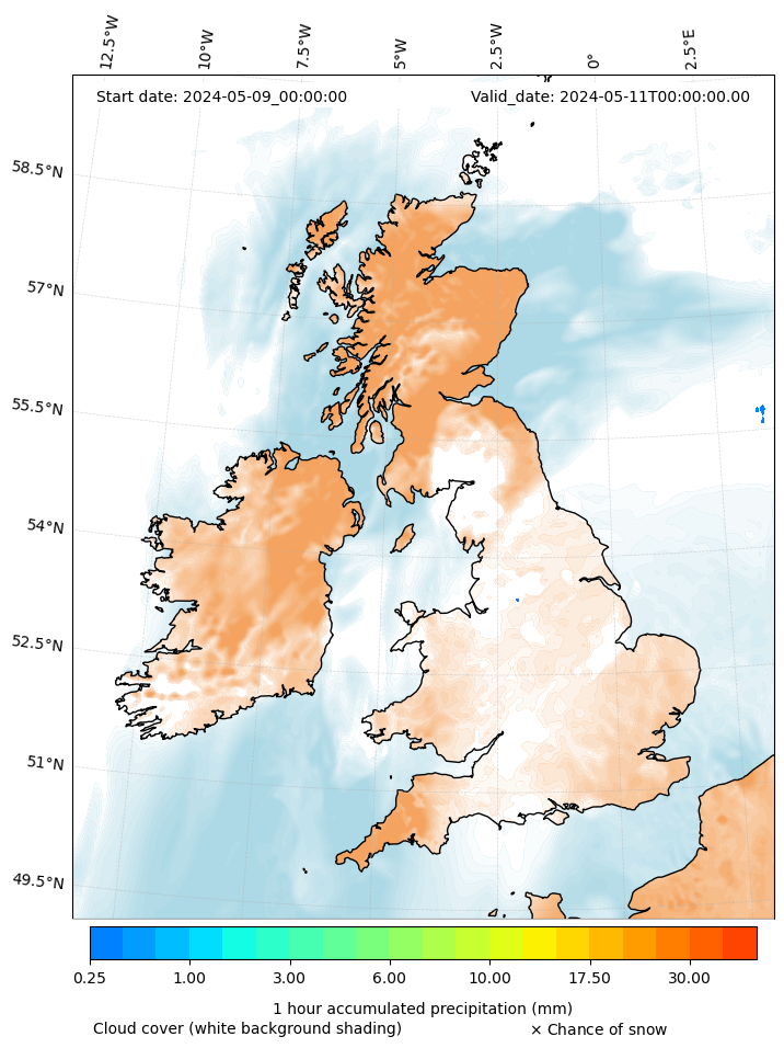- Snow mixing ratio (g kg¯¹)