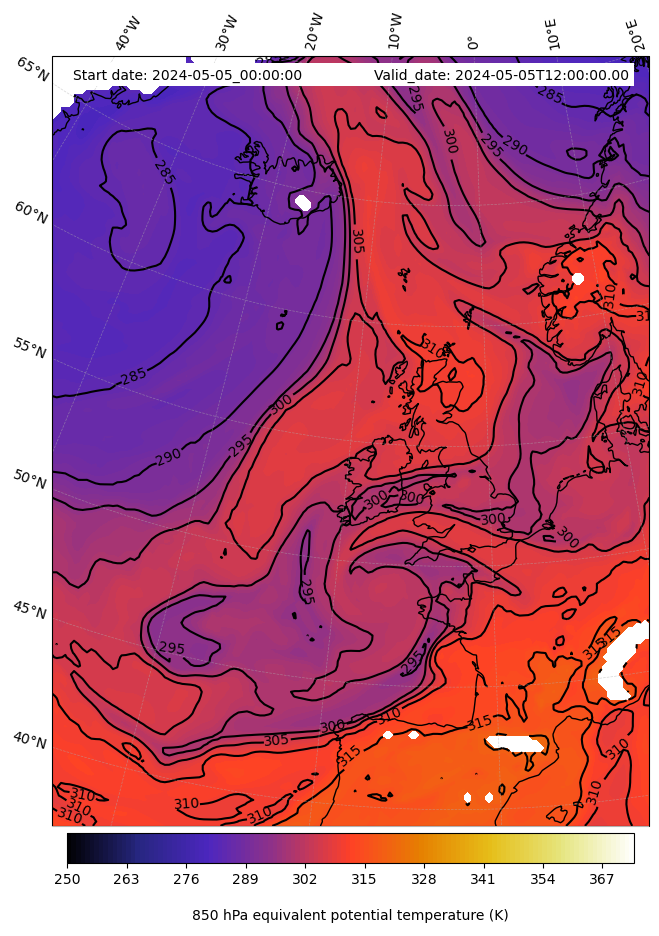 - Equivalent Potential Temperature (K)