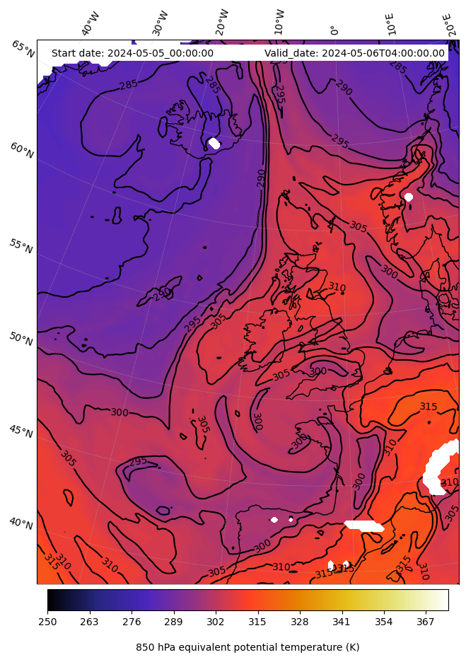 - Equivalent Potential Temperature (K)