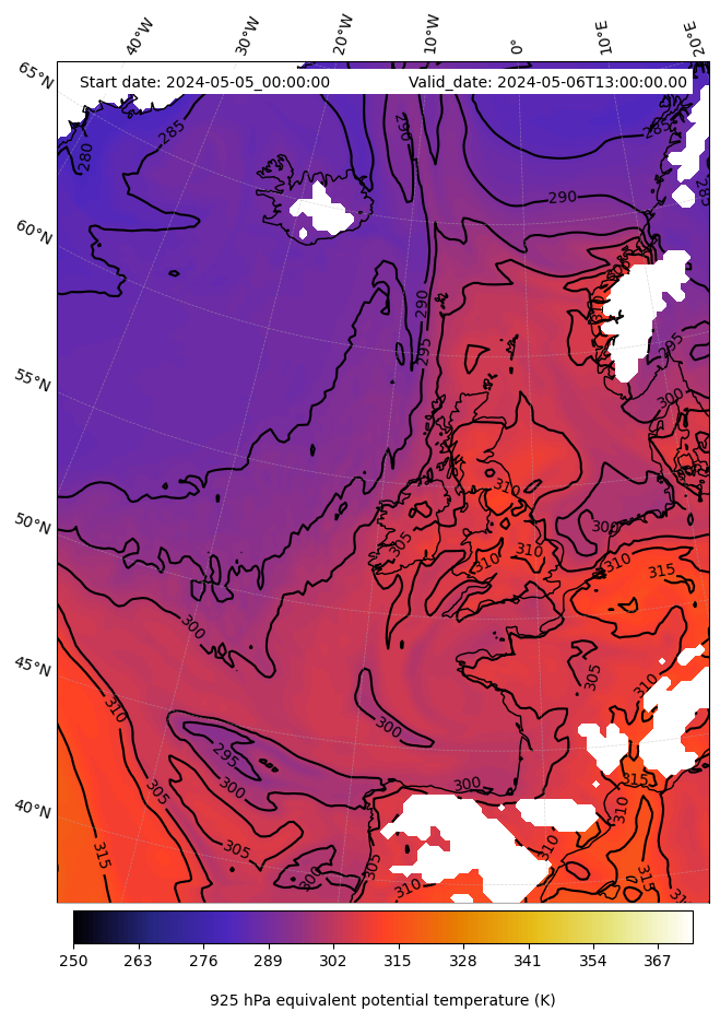 - Equivalent Potential Temperature (K)