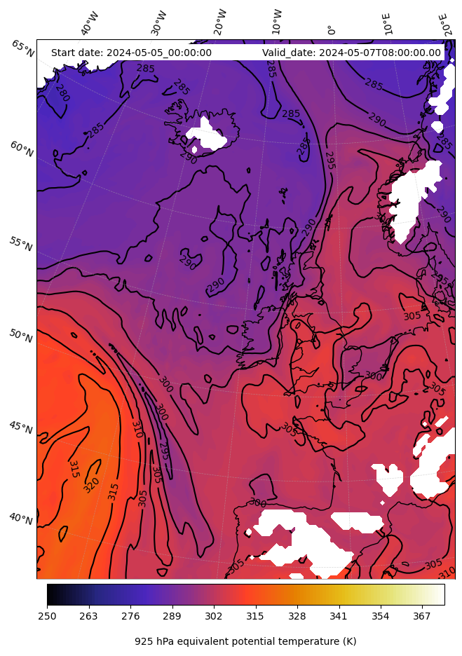 - Equivalent Potential Temperature (K)