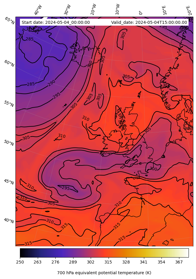 - Equivalent Potential Temperature (K)