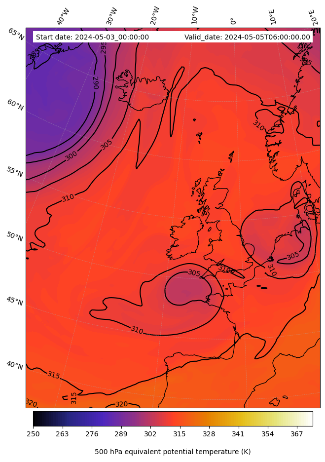 - Equivalent Potential Temperature (K)