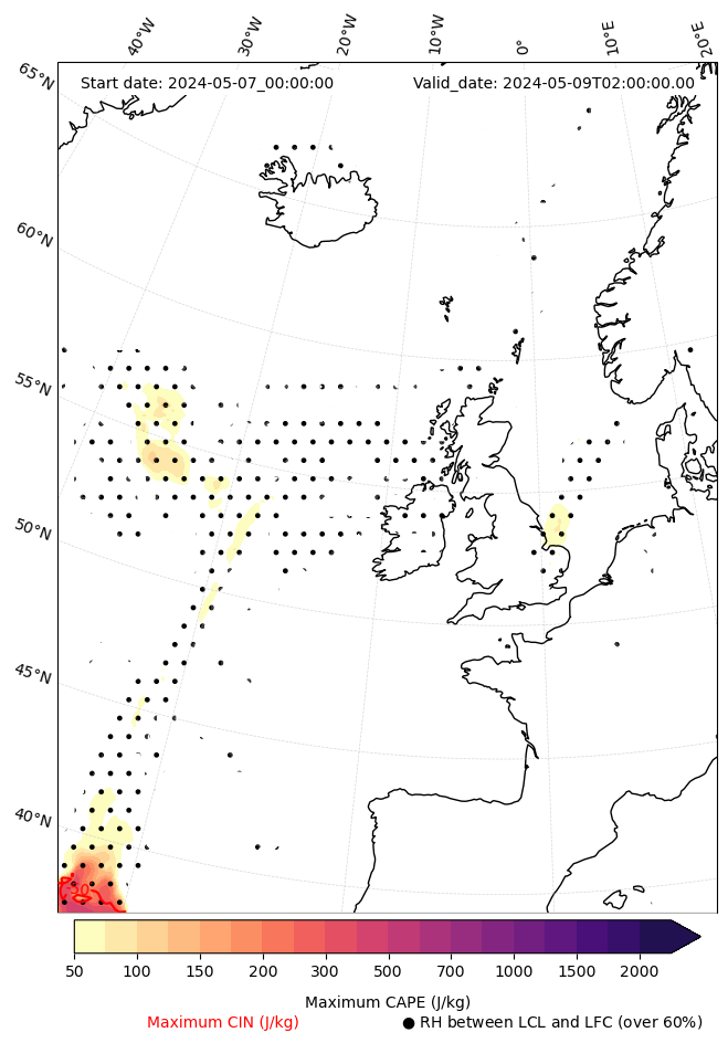 - Maximum CAPE (J/Kg)