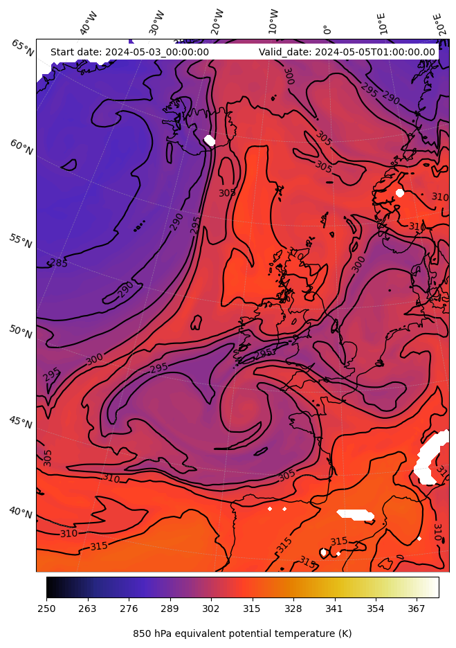 - Equivalent Potential Temperature (K)