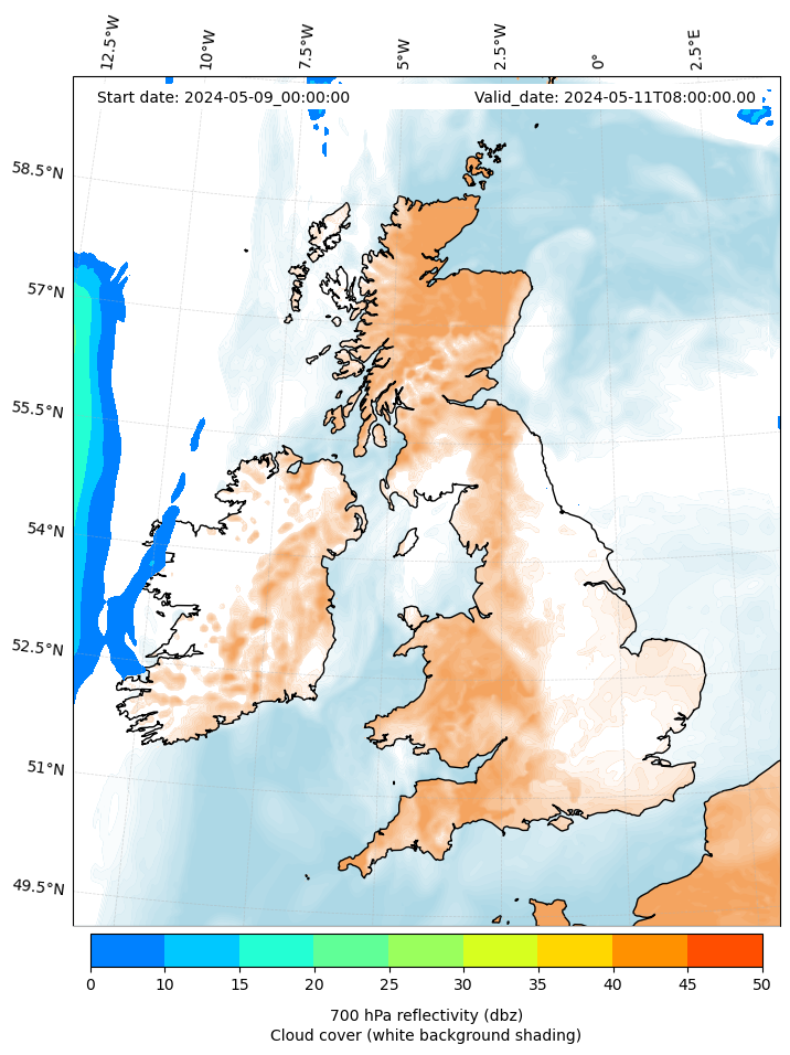- Cloud water mixing ratio (g kg¯¹)