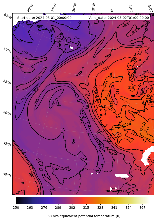 - Equivalent Potential Temperature (K)