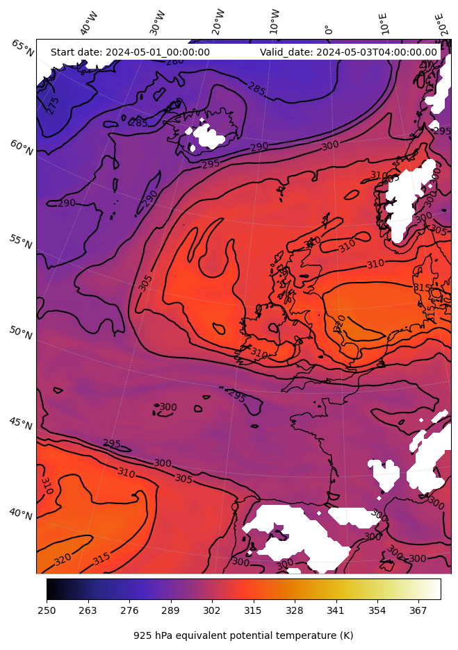 - Equivalent Potential Temperature (K)