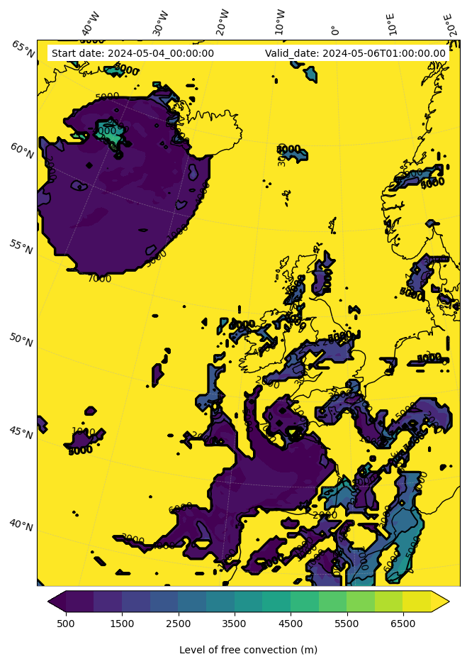 • Level of free convection (m)