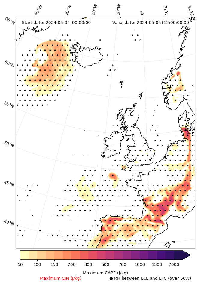 • Maximum CAPE (J/Kg)