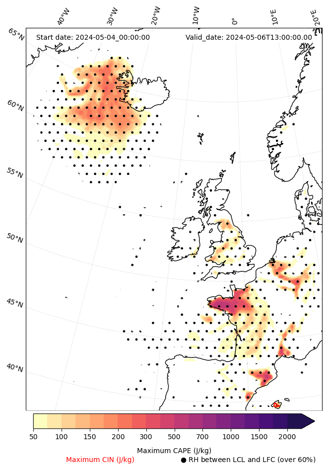 • Maximum CAPE (J/Kg)