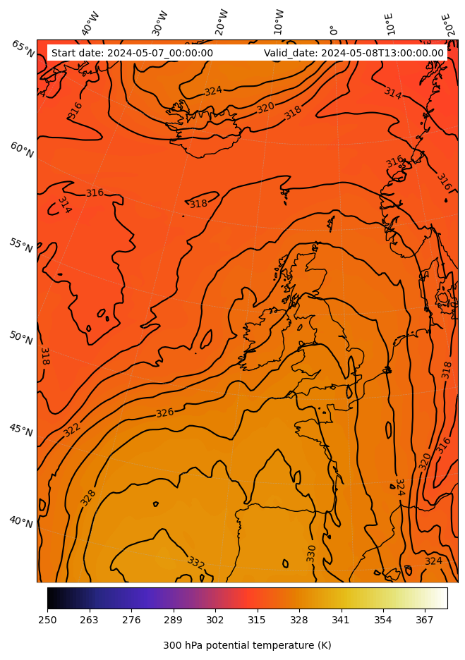 - Equivalent Potential Temperature (K)- 300 hPa
