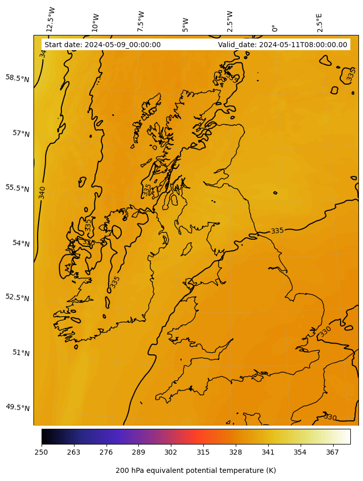 - Equivalent Potential Temperature (K)