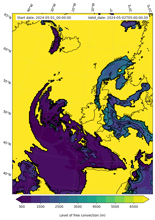 • Level of free convection (m)