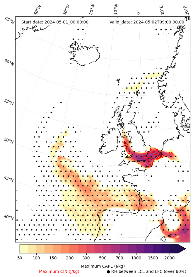- Maximum CAPE (J/Kg)