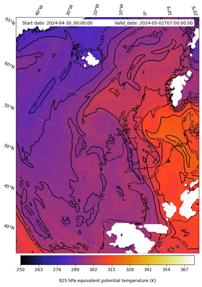 - Equivalent Potential Temperature (K)