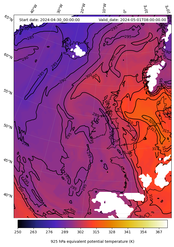 - Equivalent Potential Temperature (K)