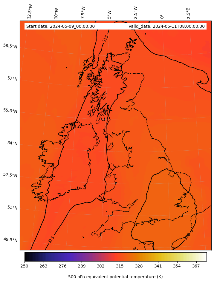 - Equivalent Potential Temperature (K)