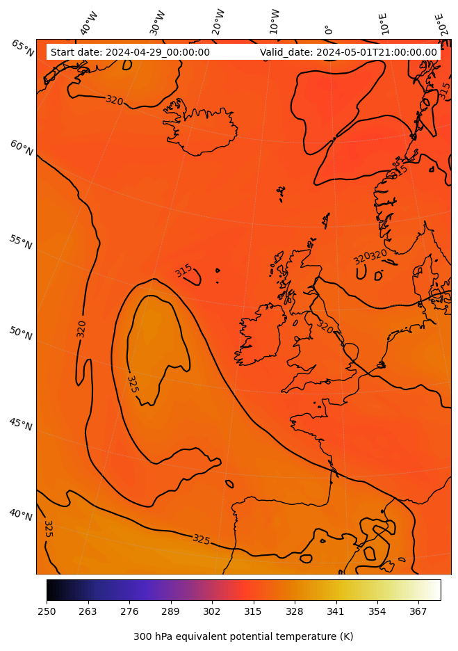 - Equivalent Potential Temperature (K)