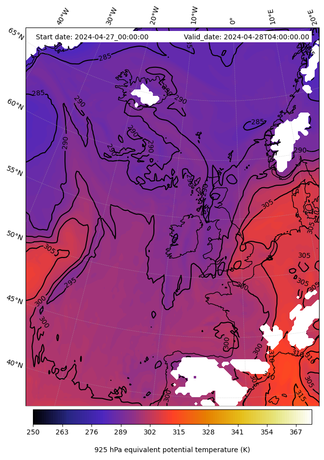 - Equivalent Potential Temperature (K)