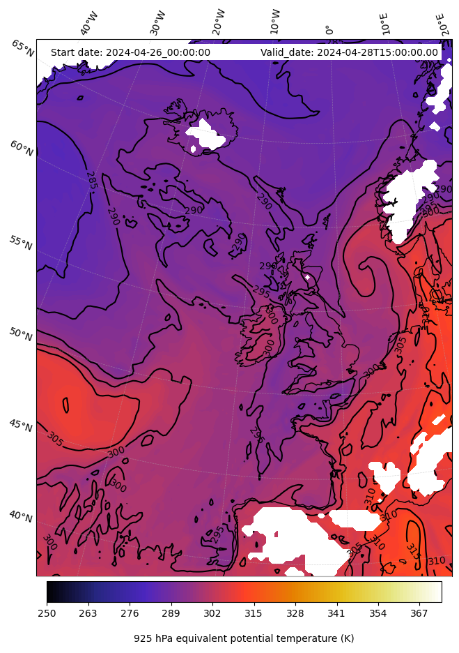 - Equivalent Potential Temperature (K)