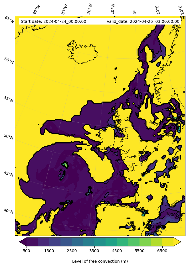 - Level of free convection (m)
