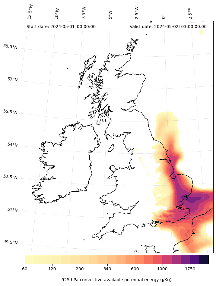 - Maximum CAPE (J/Kg)