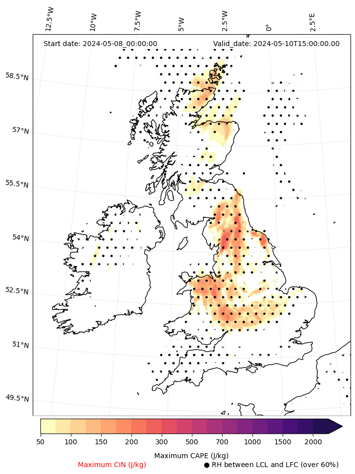 • Maximum CAPE (J/Kg)