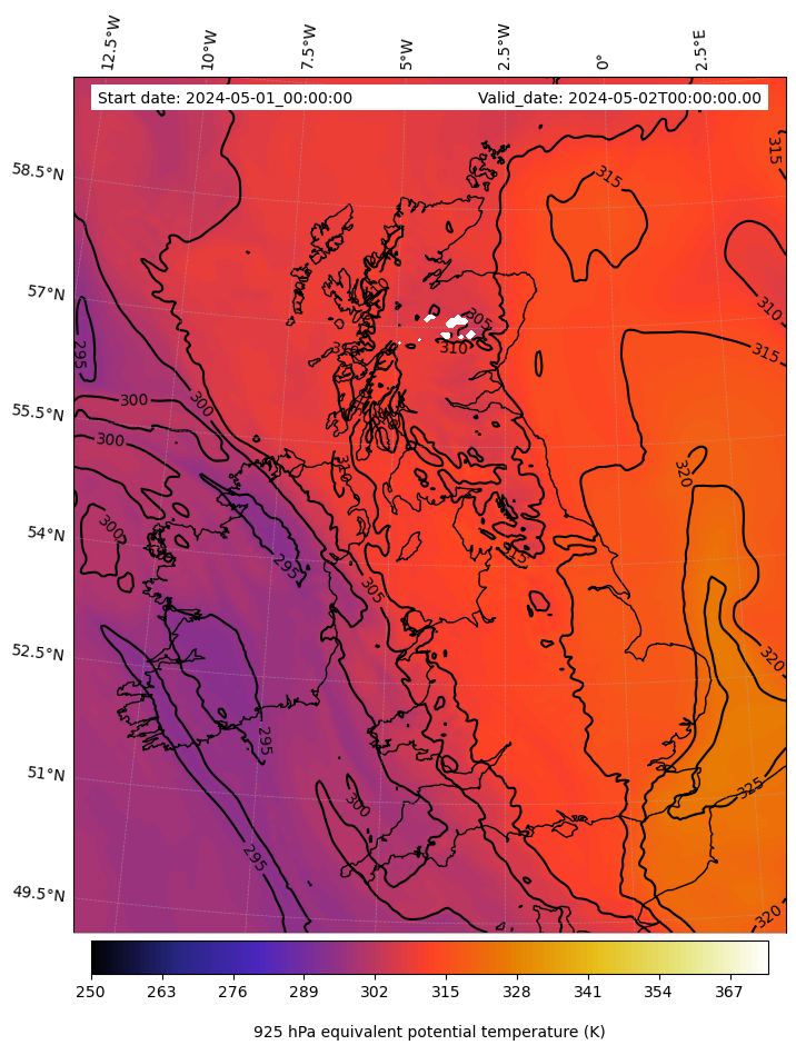 - Equivalent Potential Temperature (K)