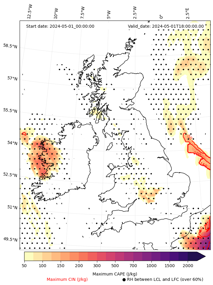 - Maximum CAPE (J/Kg)