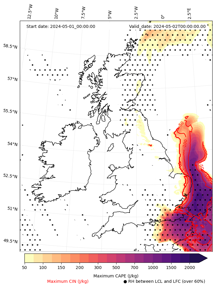 - Maximum CAPE (J/Kg)