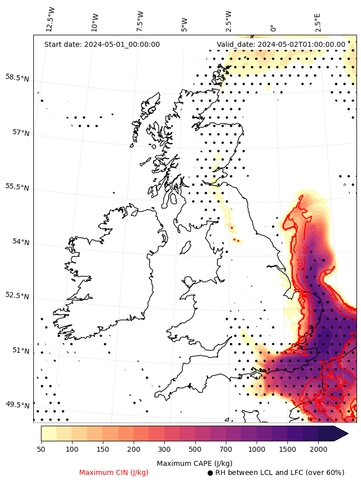 - Maximum CAPE (J/Kg)