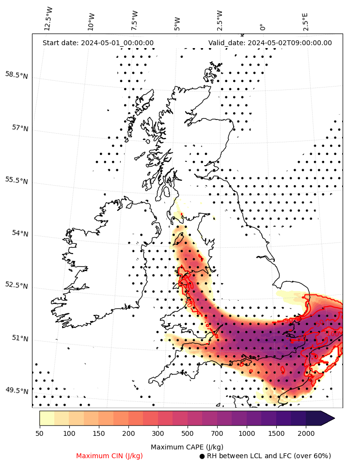 - Maximum CAPE (J/Kg)